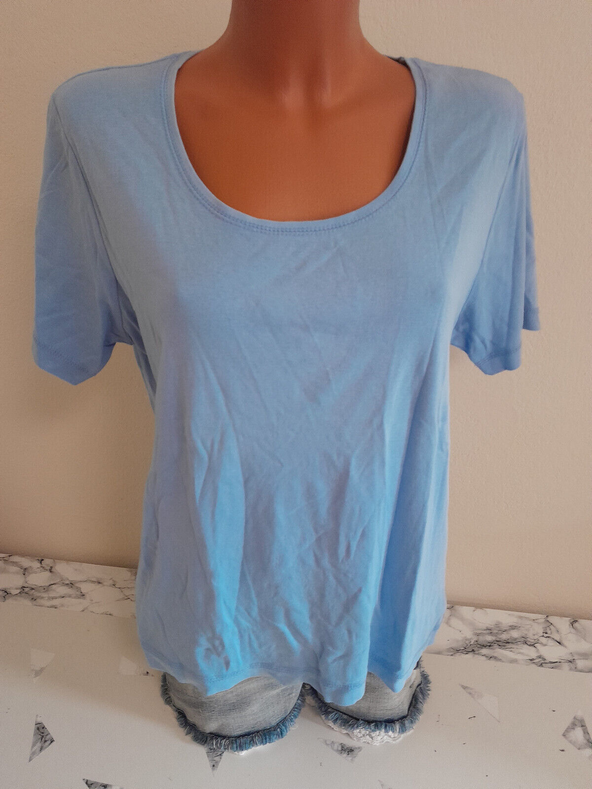 Basic Shirt L 44 T-Shirt kurzarm blau Kurzarmshirt Damen
