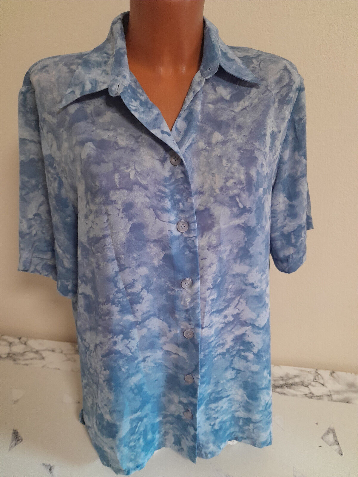Box#14 Lisa Tossa Bluse L 42 Chiffon Hemdbluse kurzarm Damenbluse blau dünn