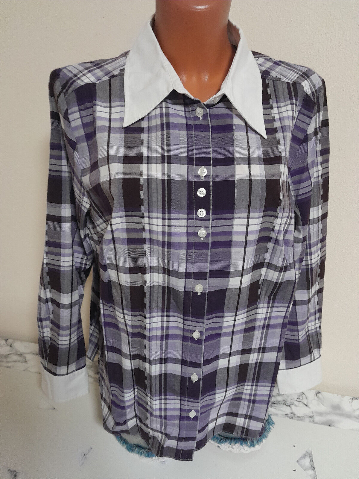 Box#15 Fair Lady Bluse XL 44 langarm Hemdbluse Damenbluse lila kariert Damen
