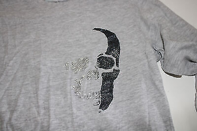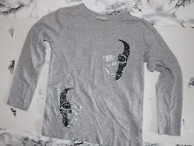 Infinity Shirt 128 T-Shirt grau Mädchen langarm Totenkopf Schädel Glitzer