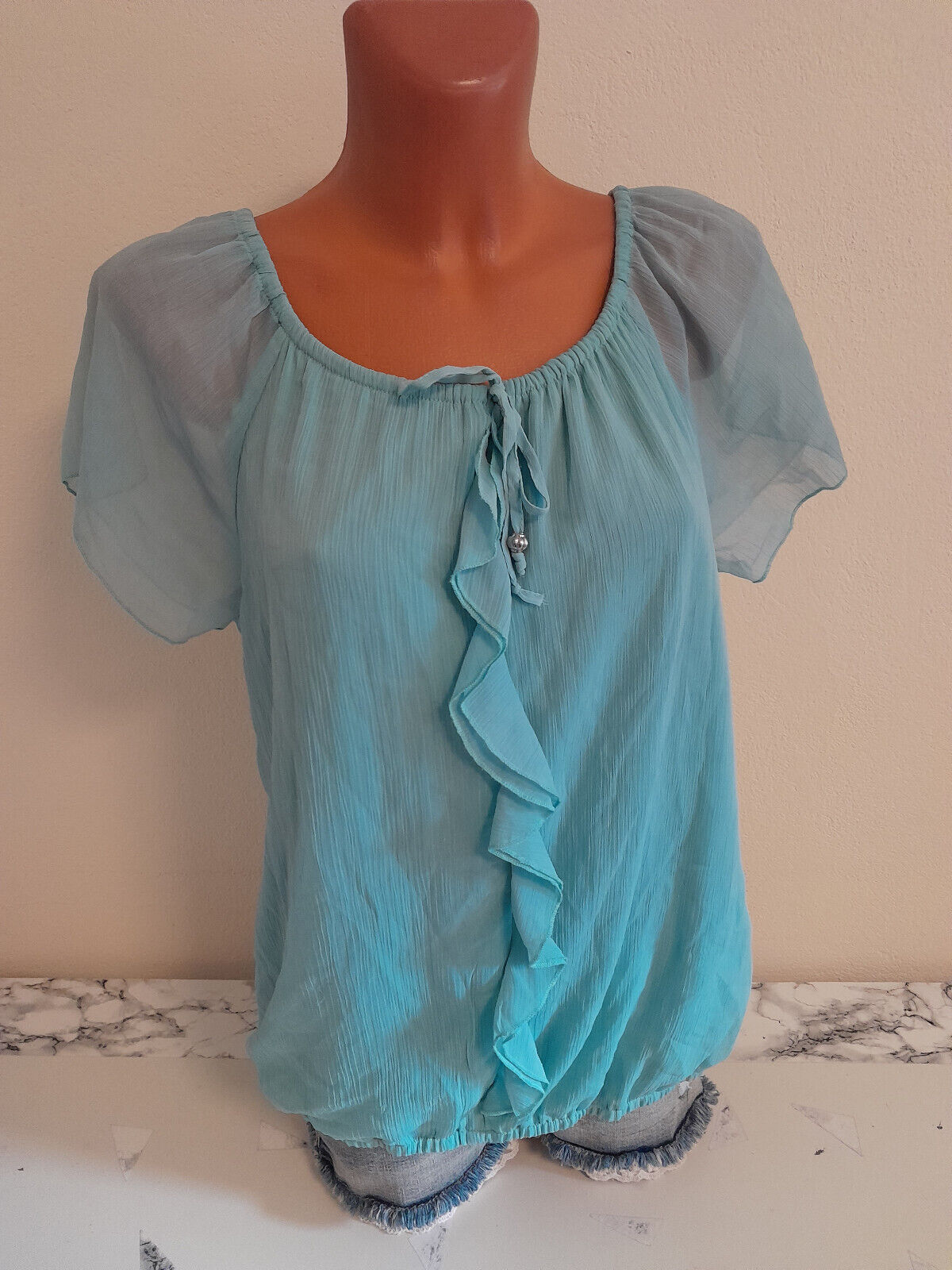 Box#16 My Own Crinkle Blusenshirt L 42 Shirt kurzarm T-Shirt Bluse Damen blau