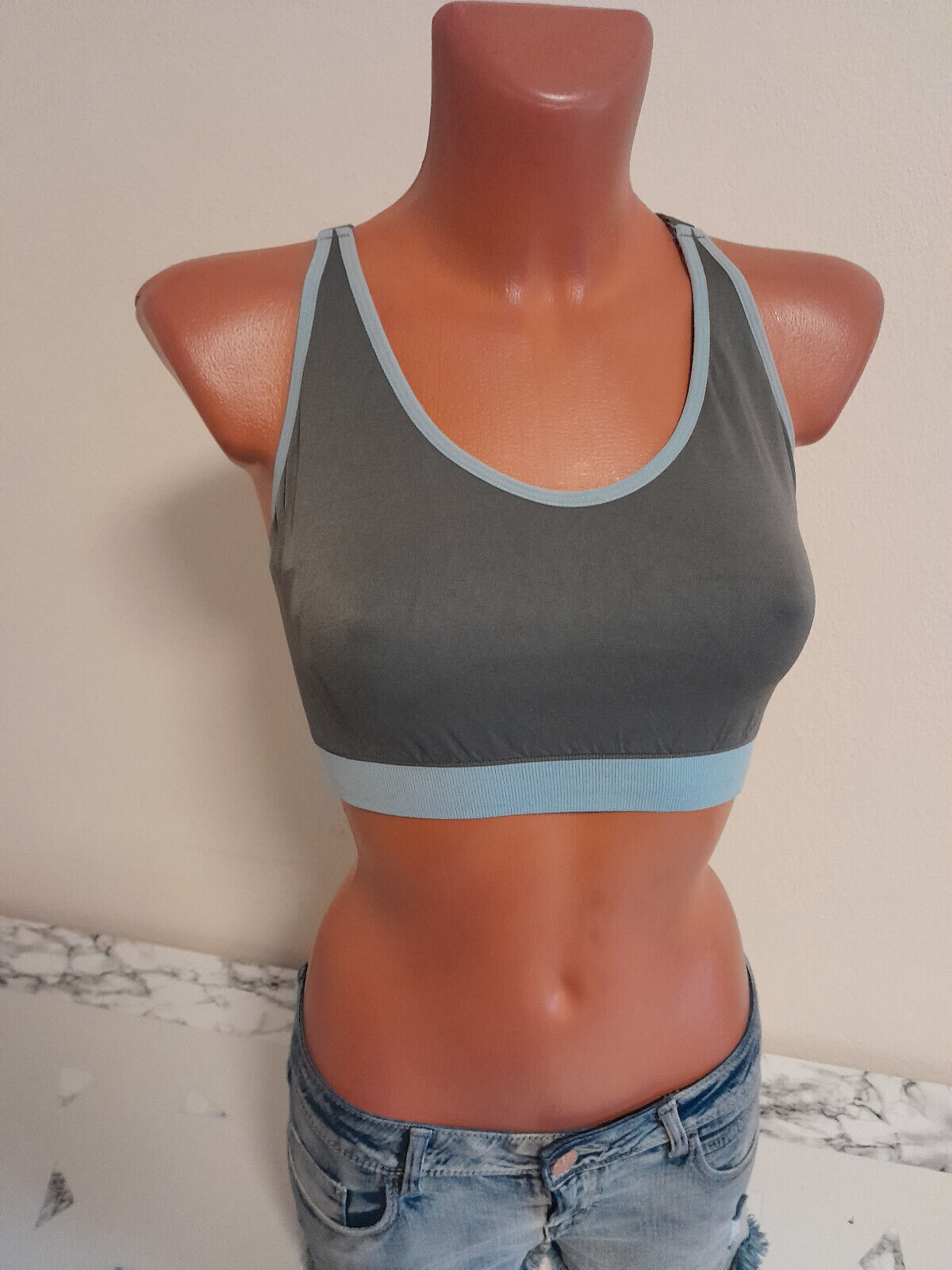 Box#18 Sport BH Unterwäsche stretch Bustier S 36/38 Top grau bauchfrei Sporttop