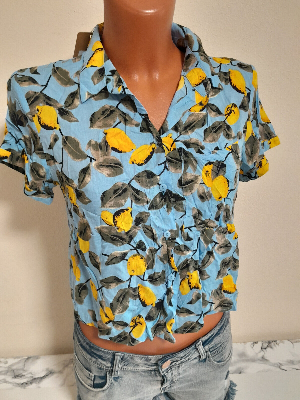 24 Colours Bluse S 36 Shirt kurze Bluse kurzarm blau gelb bauchfrei Top Sommer