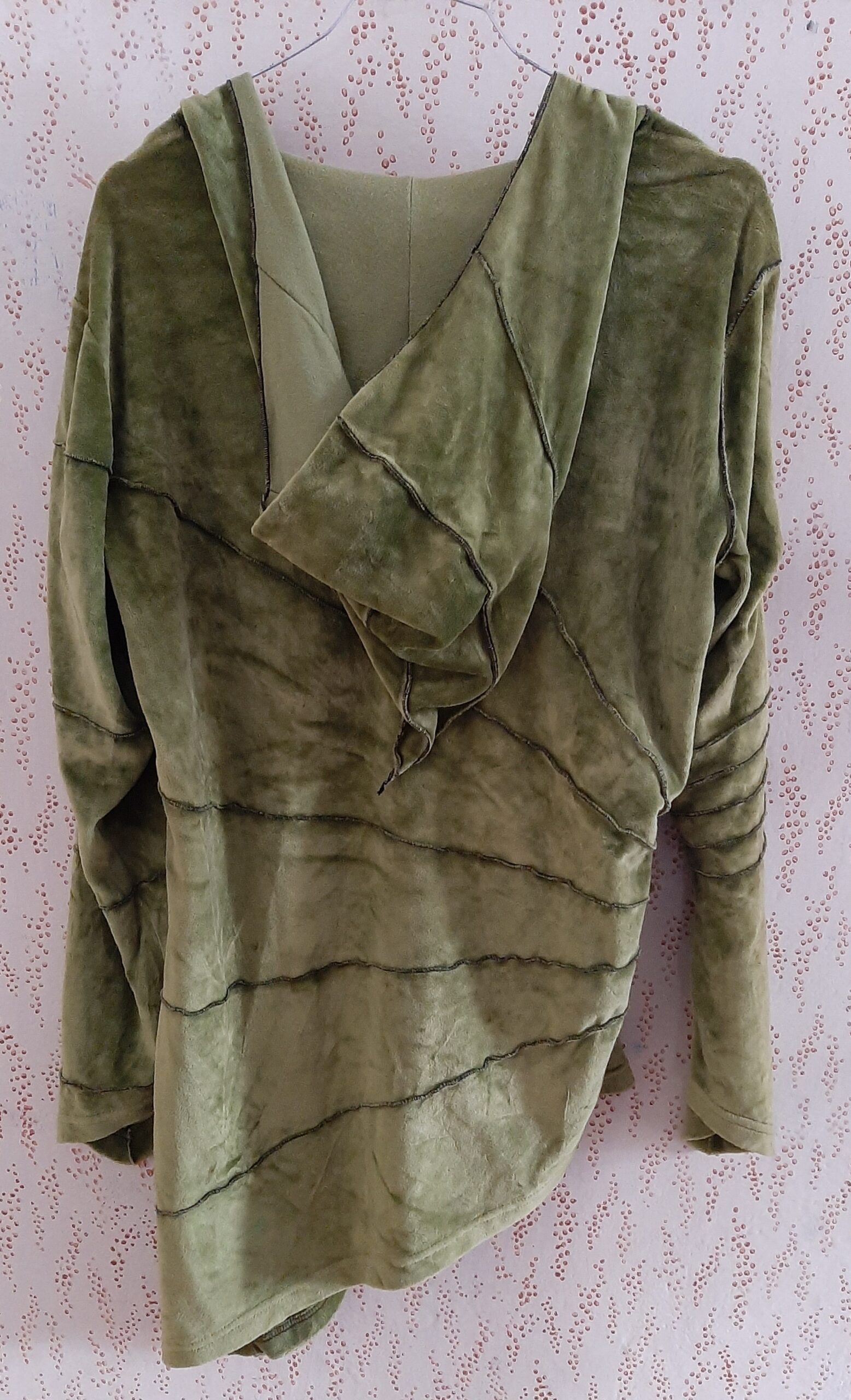 Box#16 Anki Art + Design Berlin Pullover L paßt M 40/42 samtiger Pulli Sweater Shirt langarm longsleeve stretchig Kapuze Hoodie grün weich Damen