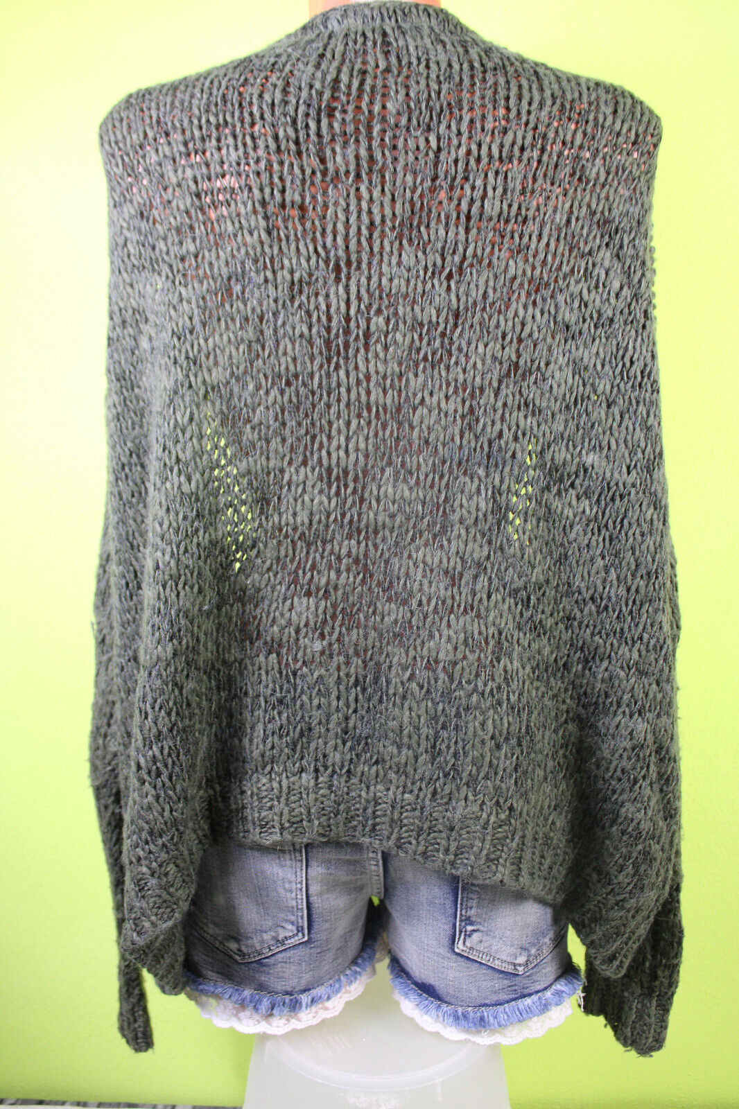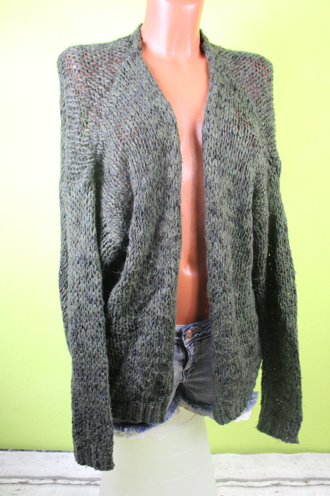 Heine Strickjacke One Size M L Jacke Strick Kragen langarm grün Cardigan offen