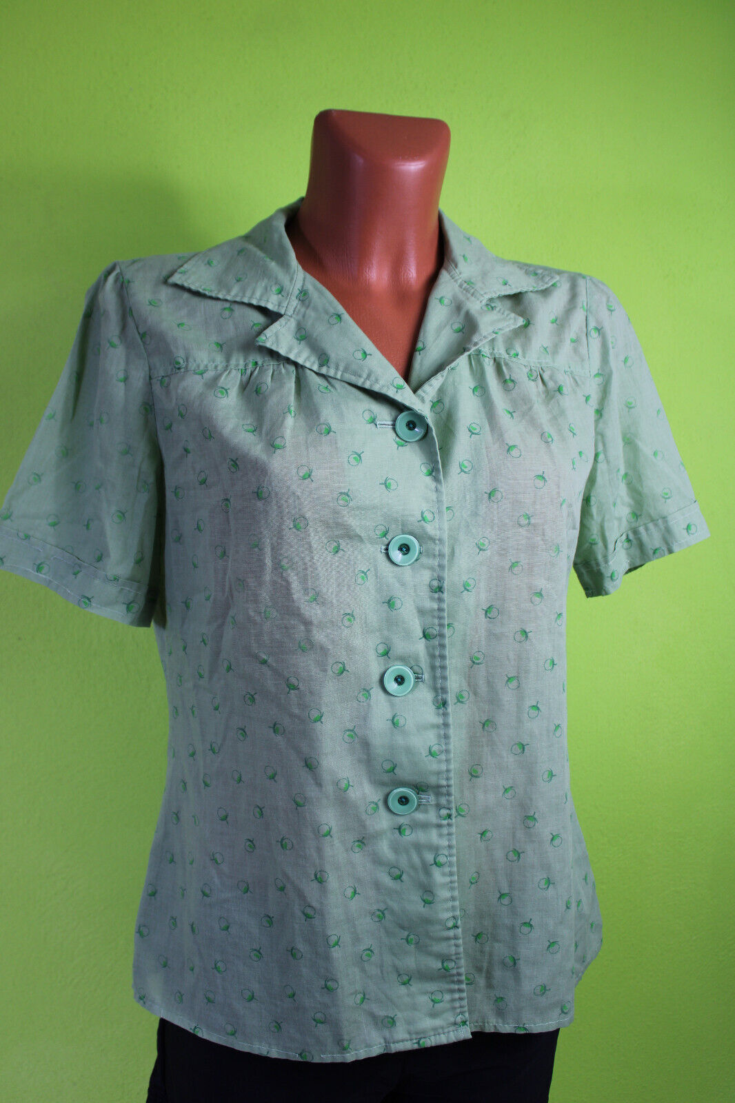 dünne Bluse kurzarm Kurzarmbluse grün M 40 Damenbluse Damen Obst Muster