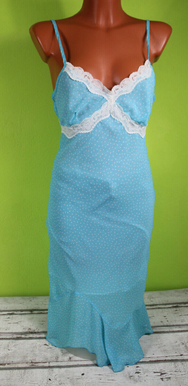 Tally Weijl dünnes Kleid Blau Schlafshirt Nacht Wäsche Punkte M eher S 36