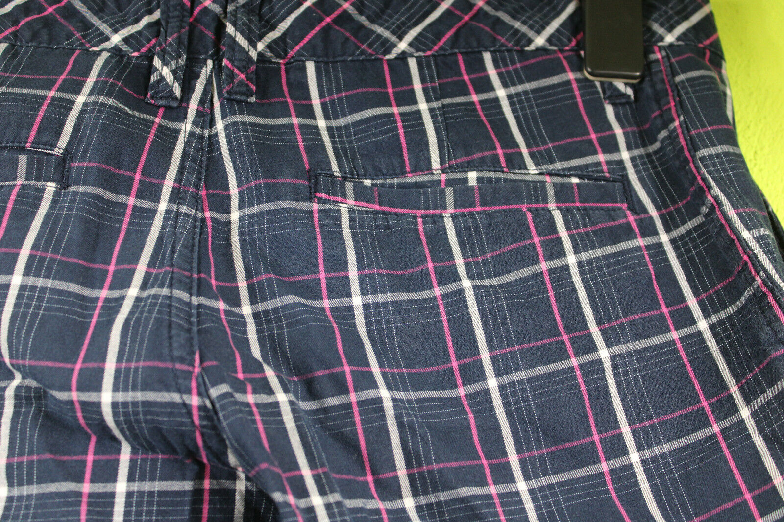 H&M Mädchen Jeans 164 Bermuda Shorts Jeansshorts blau rosa kariert kurze Hose