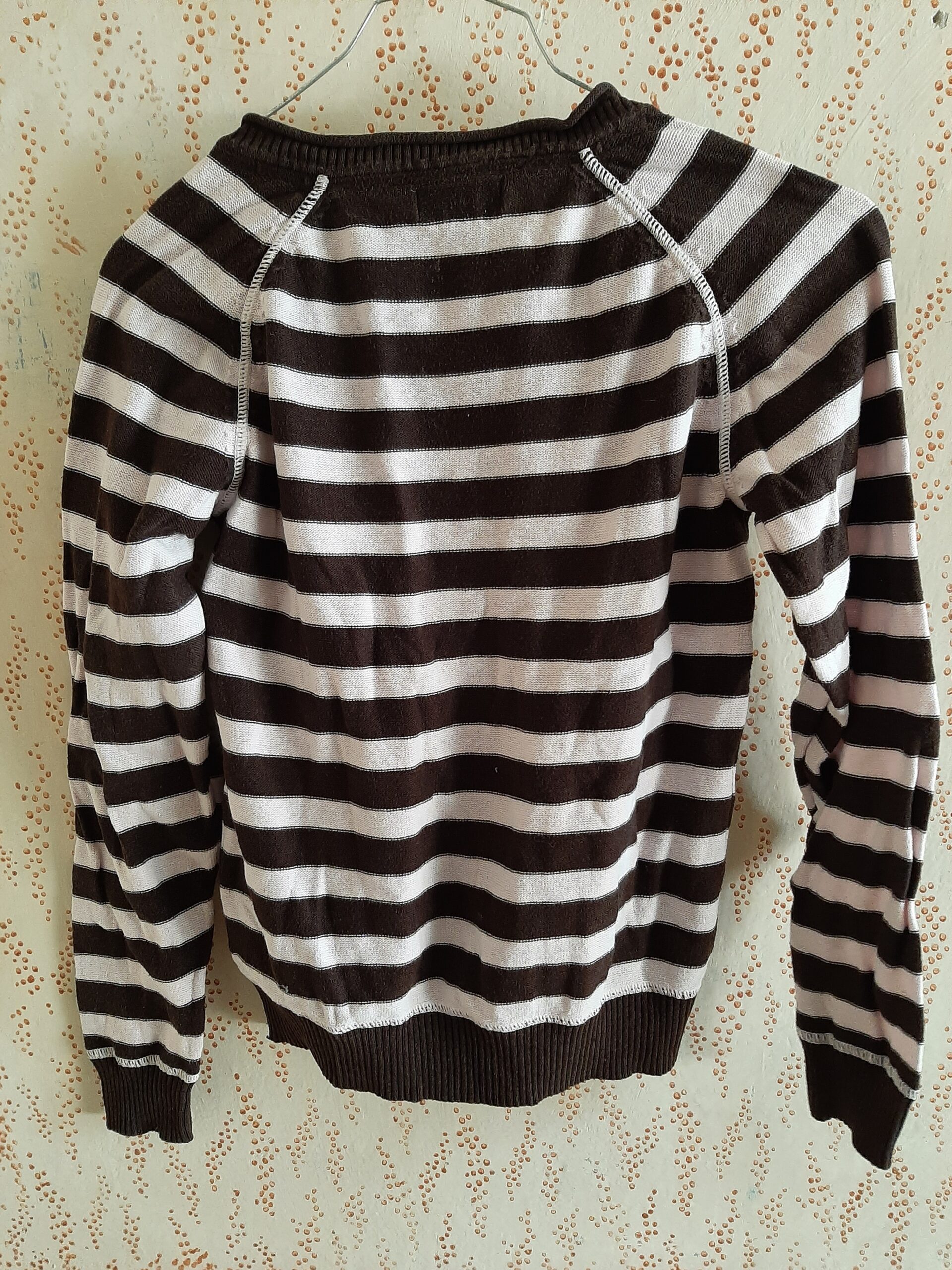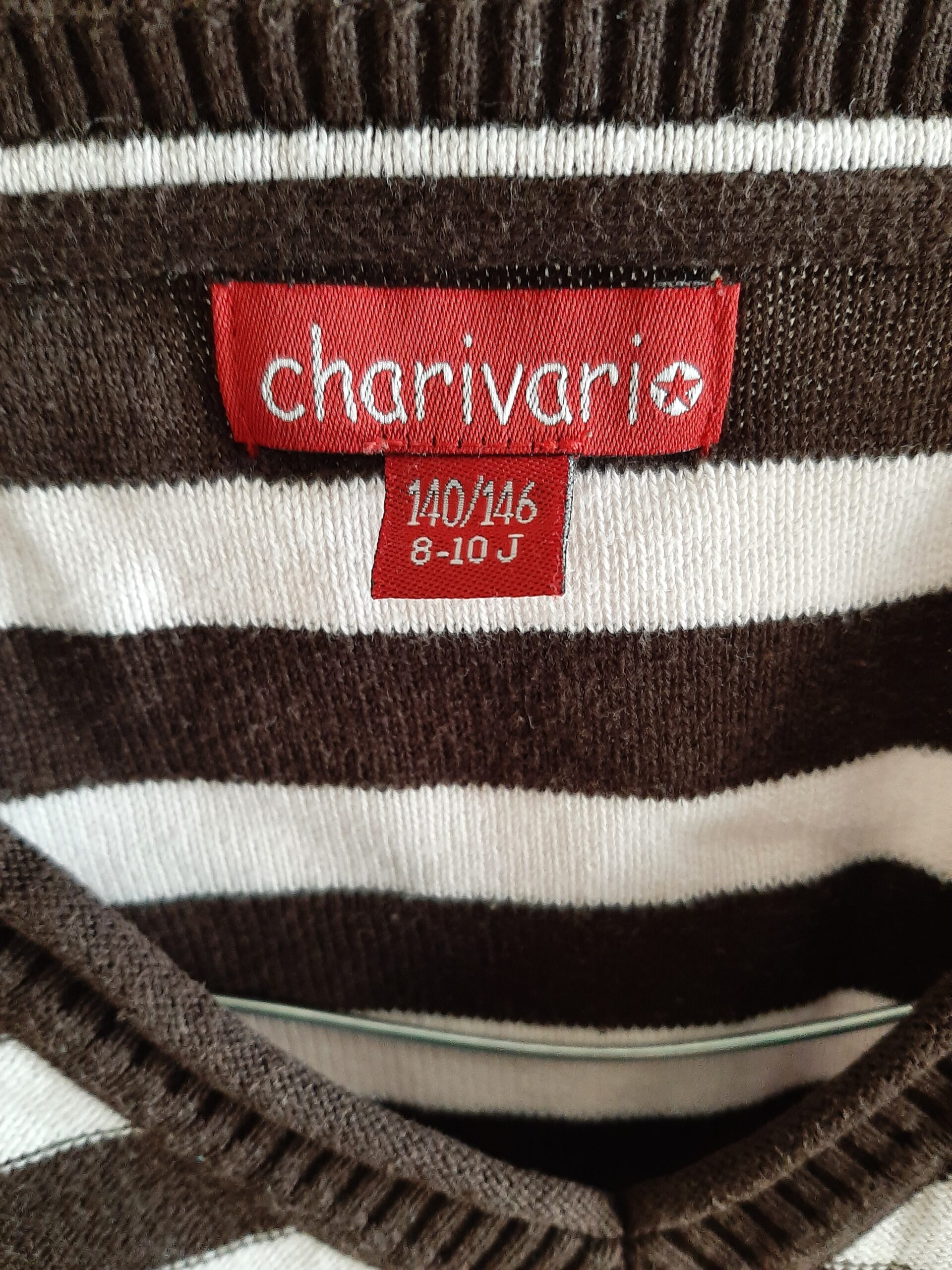 Box#88 charivari Pullover Mädchen 140/146 braun weiß gestreift Pulli V-Ausschnitt langarm Strick stretch