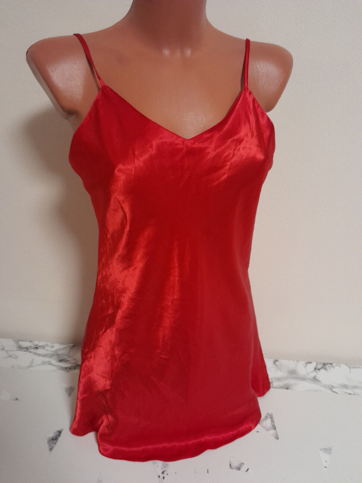 S 36 Satin Nachthemd Schlafkleid Nachtwäsche Dessous rot Nachtkleid Träger