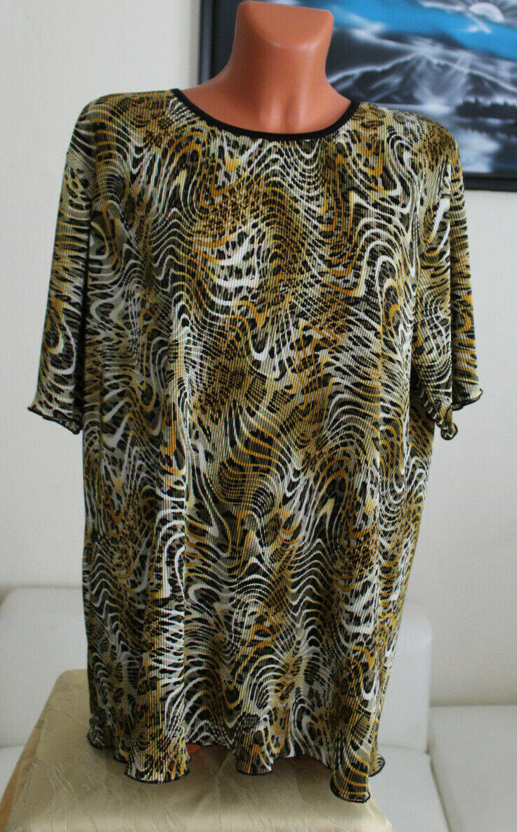 Crinkle Shirt Leopard Muster Tierfell Crinkleshirt Damen 2XL 48 Kurzarmshirt