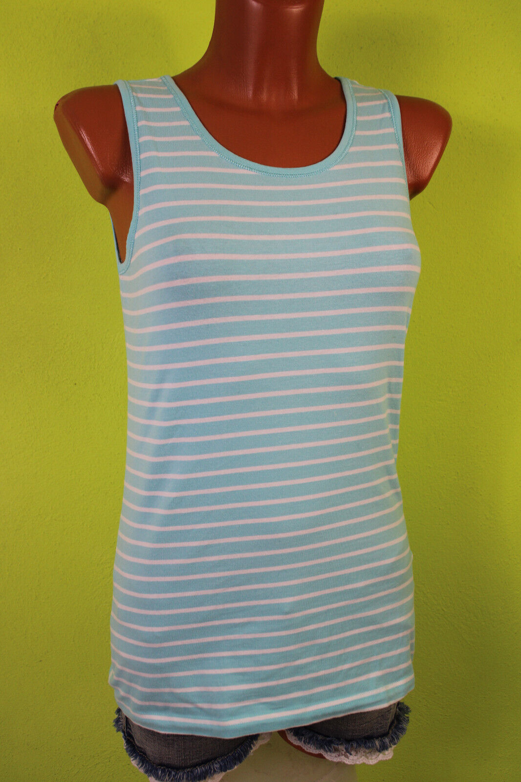 langes Top Tanktop Shirt S 36/38 Trägershirt Unterhemd blau weiß gestreift Damen
