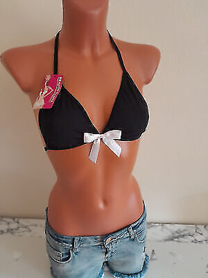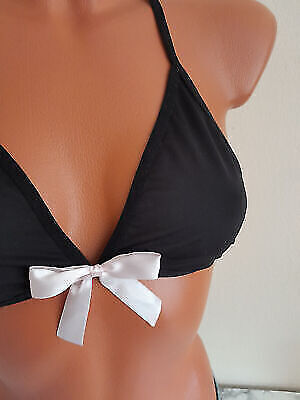 Set Slip & BH S 36/38 A Stoff Triangel Neckholder Strapshalter Schleife schwarz